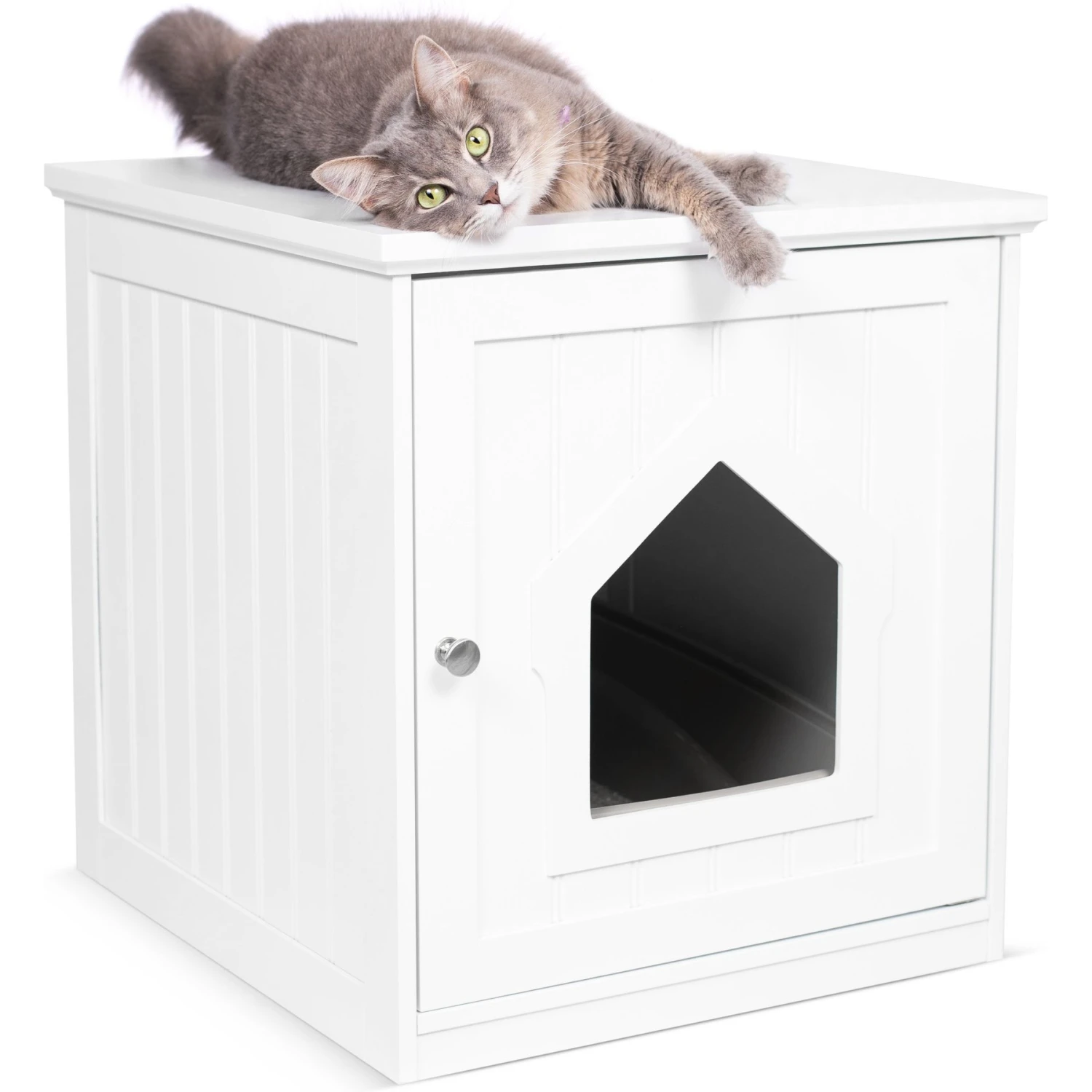 BirdRock Home Internet’s Best Decorative Cat House adds a stylish and convenient touch to any room in your home! This versatile pet furniture offers a purr-fectly hidden spot for your furbaby’s bed or litter box (each sold separately). The decorative cat hole lets your pet come and go as they please, while the hinged door provides easy access for cleanups. The multi-functional design is great for use as a nightstand or end table. Your pal will love having a dark and quiet space all to themselves, while you’ll love the classic design that blends in seamlessly with your home decor!