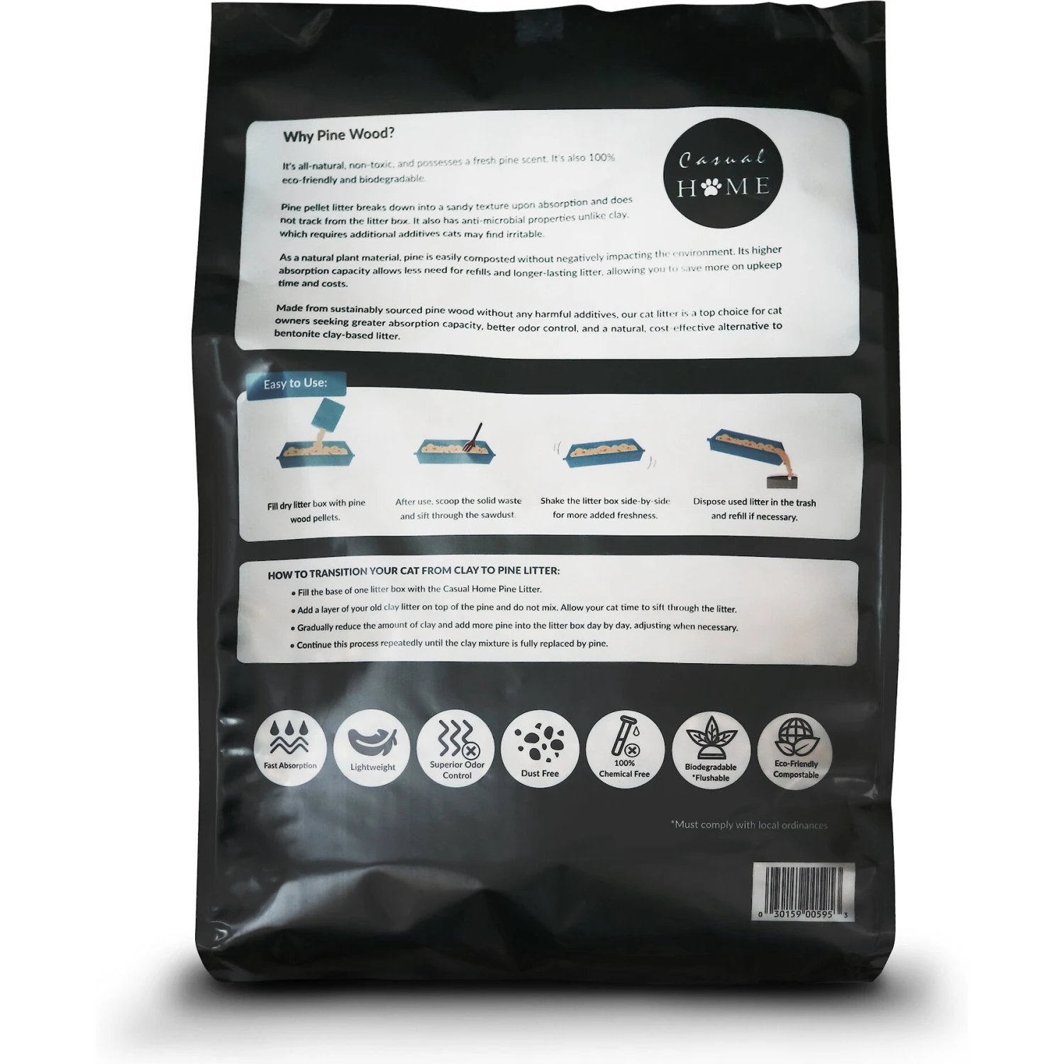 Harness the natural power of pine to keep your home cleaner with Casual Home Natural Pine Pellet Unscented Non-Clumping Cat Litter. Made from 100% pine, this non-clumping cat litter eliminates odors for an extended period of time. The highly-absorbent material quickly traps and retains several times its weight in moisture. Because it’s 100% natural, this eco-friendly litter can be composted or flushed after use. You’ll also appreciate that the low-dust material stays in the litter box and out of places that could trigger allergies or make a mess in your home.