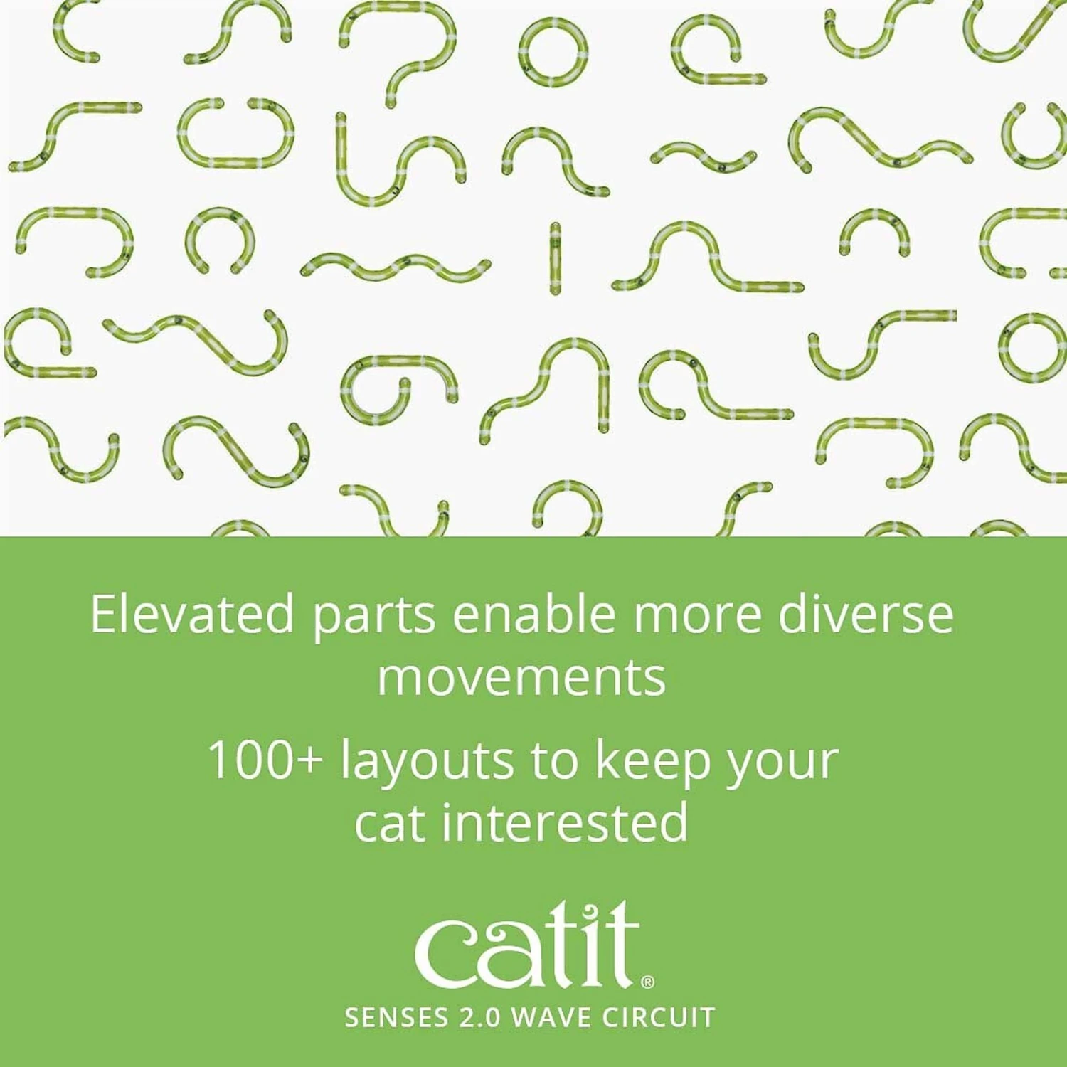 Build up your frisky feline’s agility and speed with the Catit Senses 2.0 Wave Circuit Cat Toy. The wavy design offers elevation for more diverse movements and can be easily configured into 100+ layouts that’ll keep your kitty interested and entertained. The self-contained circuit includes a weighted ball and several peek-a-boo openings so your kitty can paw her way to the purr-fect playtime—with no need to chase stray balls around the house. Stimulate your cat’s senses and activate your best girl’s inner athlete with this fun toy!