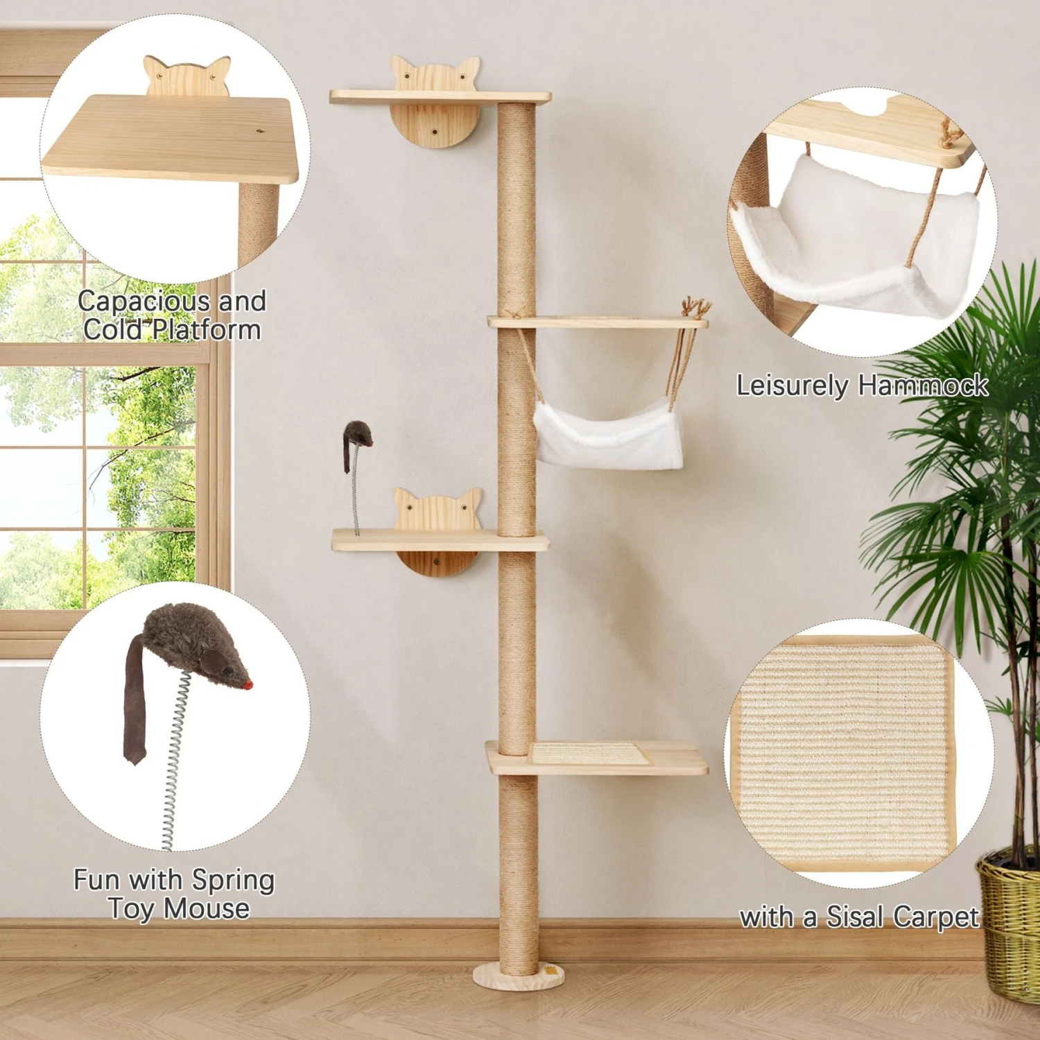 Wall-mounted Cat Tree, Hammock, Mice Toy, Assembly Kits, Instructions.