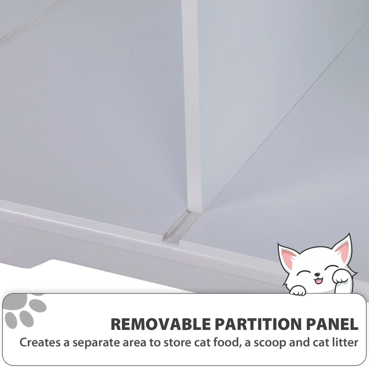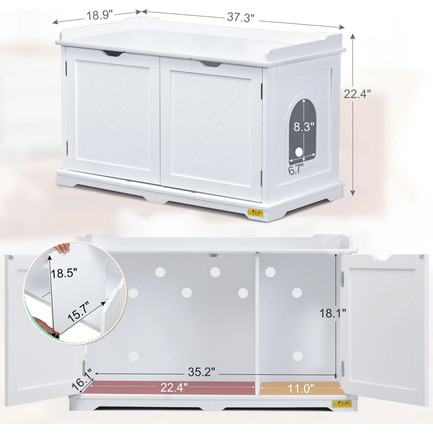 Give your kitty some purr-ivacy with the Coziwow by Jaxpety Wooden Storage Bench Cat Litter Box. This special feline furniture is designed to hide your cat’s litter box (sold separately) in plain sight. The classic style makes it great for use as a bench, side table and more. Nine ventilation holes help keep things fresh and dry, while double doors offer full access for easy cleaning. It even comes with an optional partition for additional storage space. Made of high-quality density board with a sleek finish, this kitty litter box furniture makes a sturdy and stylish addition to your home.
