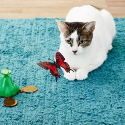 - Wispy feather tails and jingling bells on the elastic strings entice your cat to pounce and play.