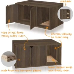 Unipaws Furniture Enclosure Decorative Storage Bench Cat Litter Box