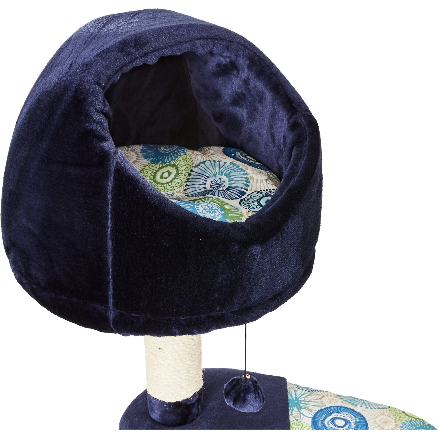 Give your kitty a spot of his own with the MidWest Feline Nuvo Resort cat tree. Designed specifically for your feline friend, this multi-tier cat tree offers a variety of play and lounging options. The perfect addition to any cat home, the sturdy tree features an attractive deep blue, ultra-soft faux fur and coordinating designer print fabric to complement any home decor. It comes with a strong sisal-wrapped support to provide a tough, resilient scratching post for your cat’s scratching and grooming needs. Plus, the plush, dark fabric is easy to clean from your pal’s fur and accidents. Your cat is sure to love this perfect spot with elevated retreats, areas to groom and a space for him play all he wants.