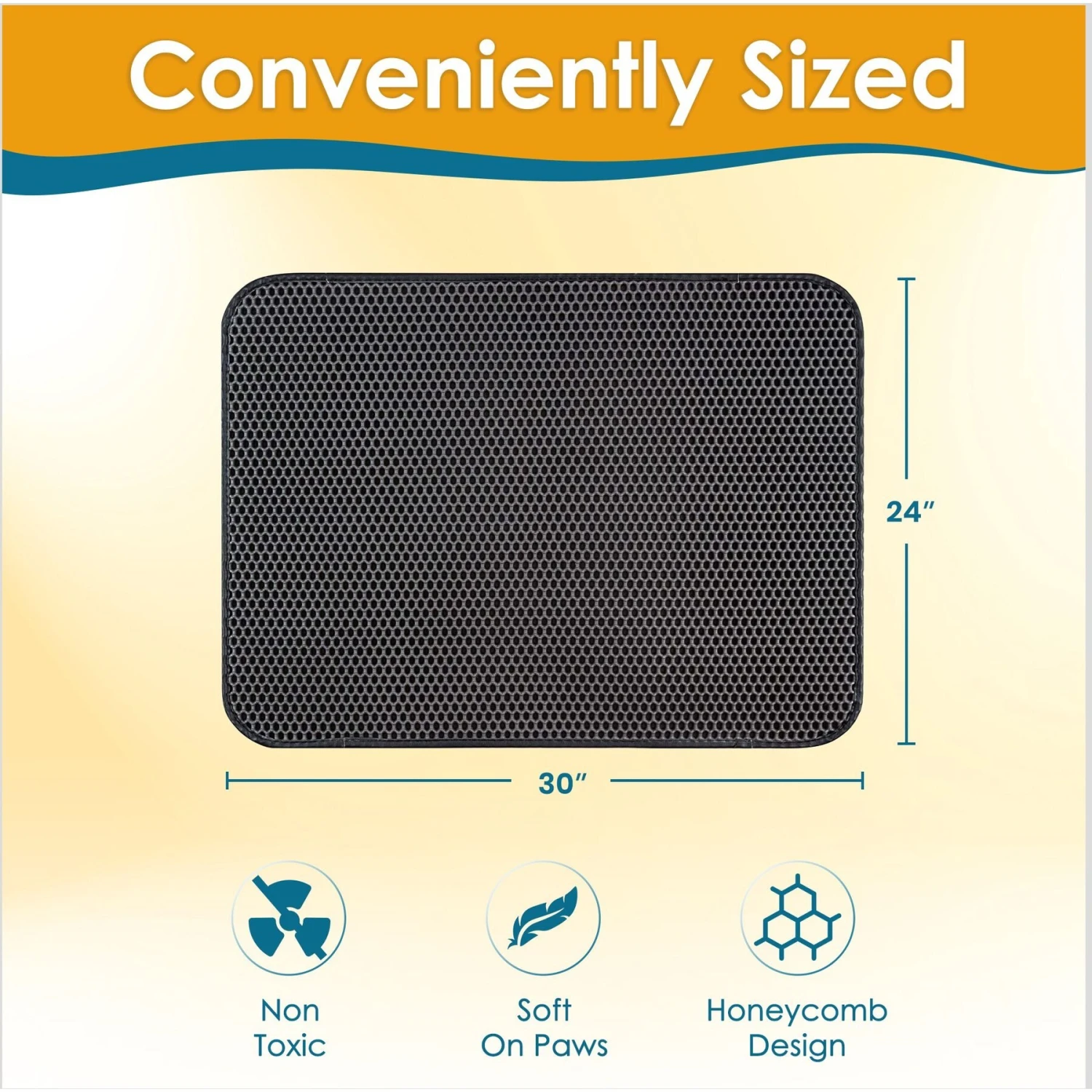 - Strategically sized at 30’’ x 24’’ to catch any litter your kitty kicks out.