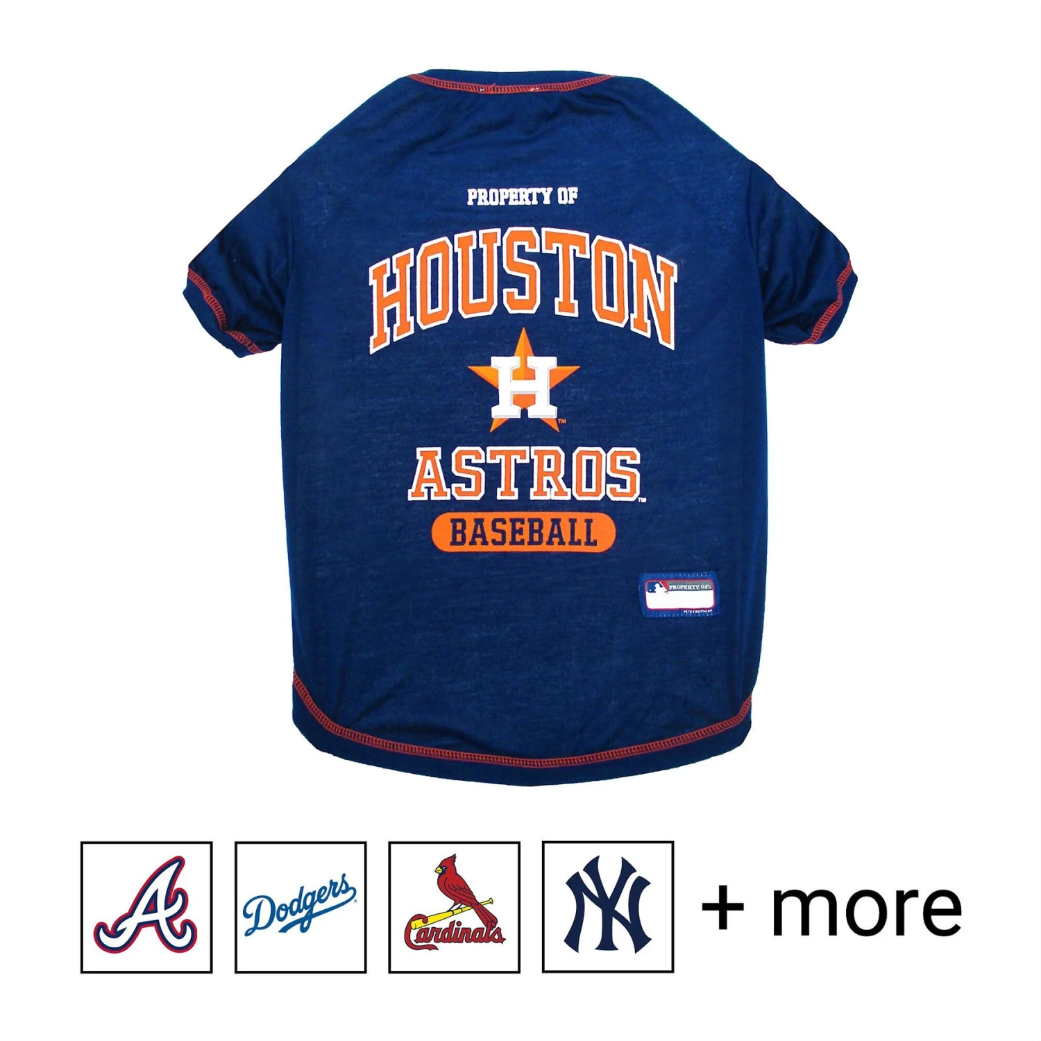 Get your sporty sidekick in the spirit for game day with Pets First MLB Dog T-Shirt! This home run worthy look is officially licensed by the MLB and designed to make your canine feel comfortable and confident. It has your paw-tner’s favorite team name and logo screen printed in their iconic team colors, plus a woven jock tag label for your pet’s name! Made of poly-cotton materials and trim stitches, this T-shirt is not only comfy, but it’s also machine washable for hassle-free cleaning!