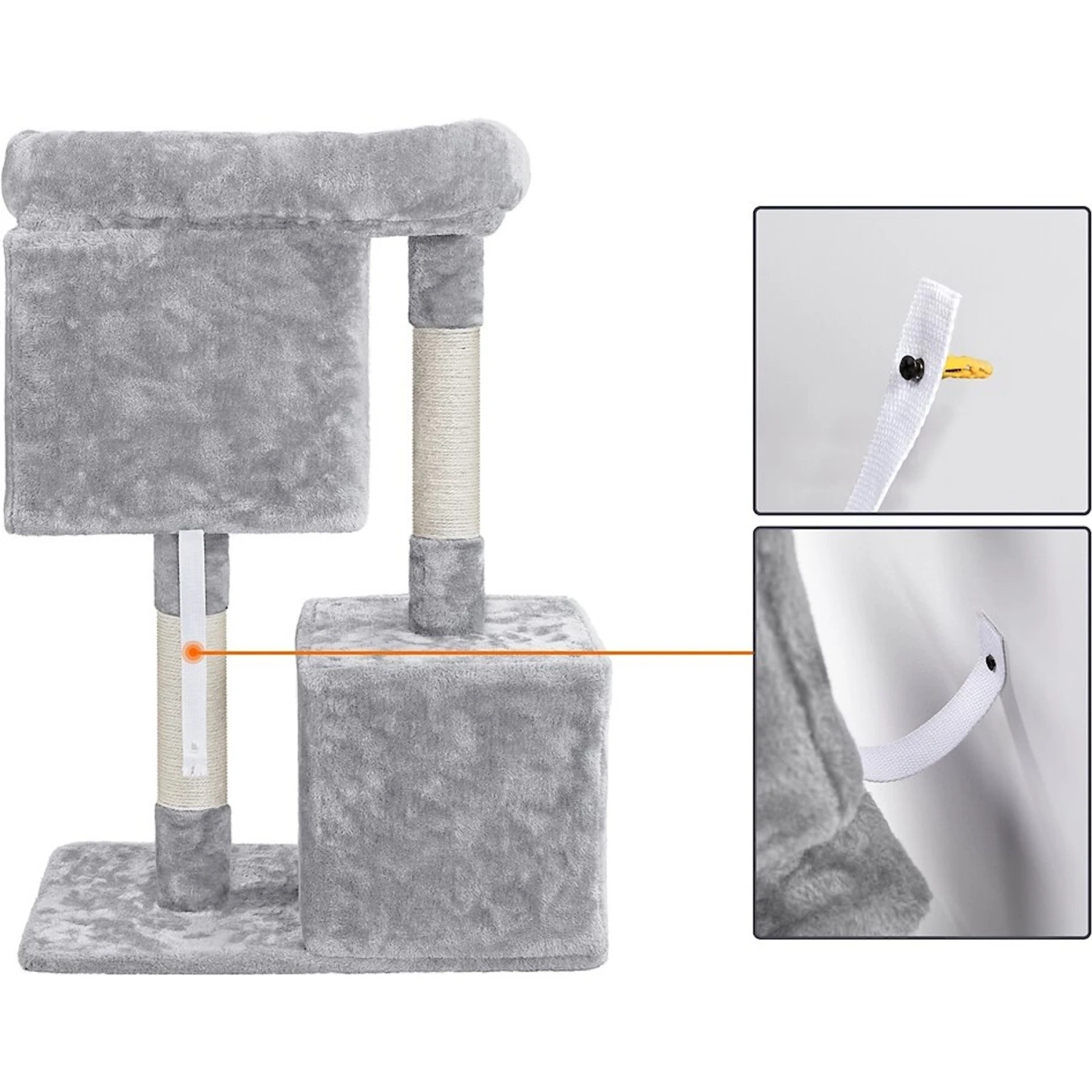 It is suggested that put the cat tree at the corner for better stability and away from sundries and stuff, avoiding accidents. Also, a location with a good view may arouse your cats interest to the cat tree.