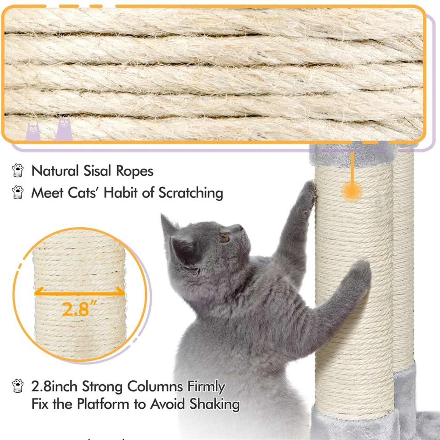 - Includes a scratching board and four scratching posts to help sharpen your kitty’s claws—and keep them away from your furniture!