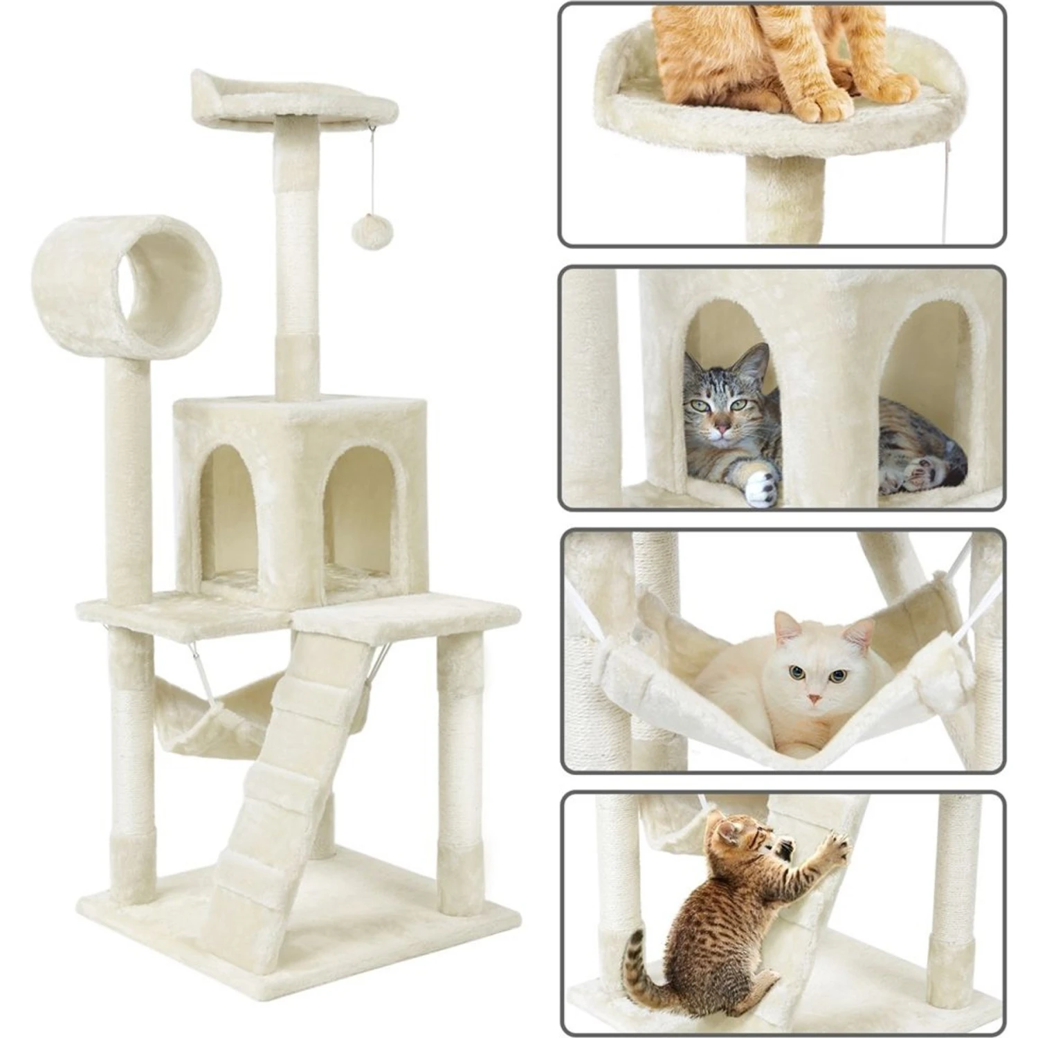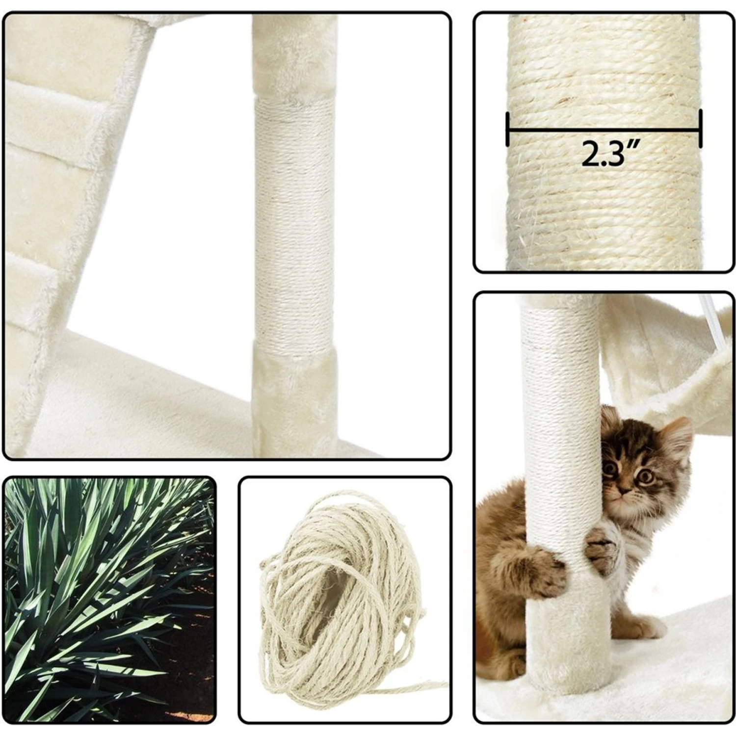 - Features multiple scratching posts covered in natural sisal rope—helping your kitties develop paw-sitive scratching habits.