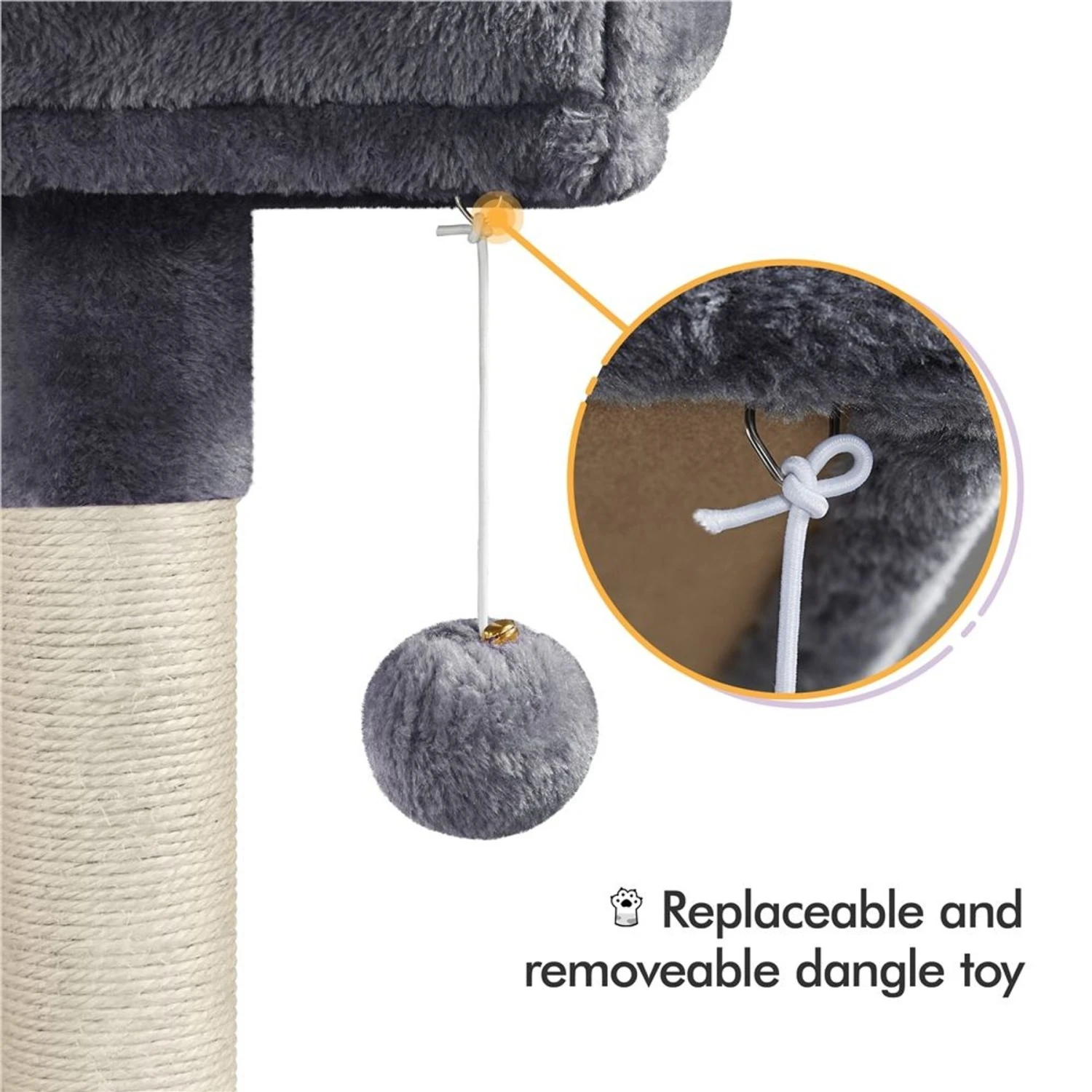 - Constructed with skin-friendly plush covering and 4 posts coiled with natural sisal rope, the cat climbing tree fulfills those instincts by scratching and climbing on the cat tower.
