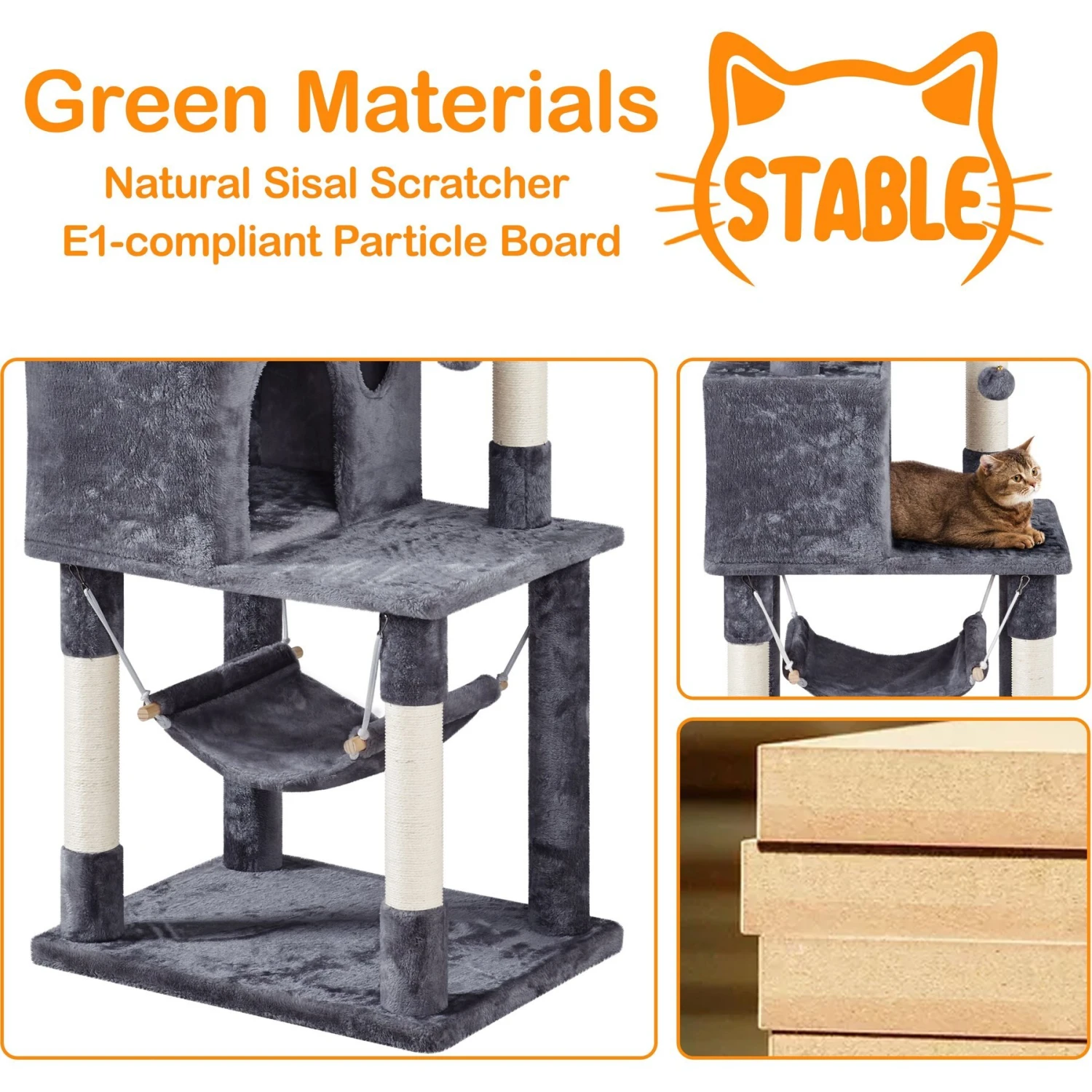 - Features multiple tiers and areas where your kitties can play and lounge.