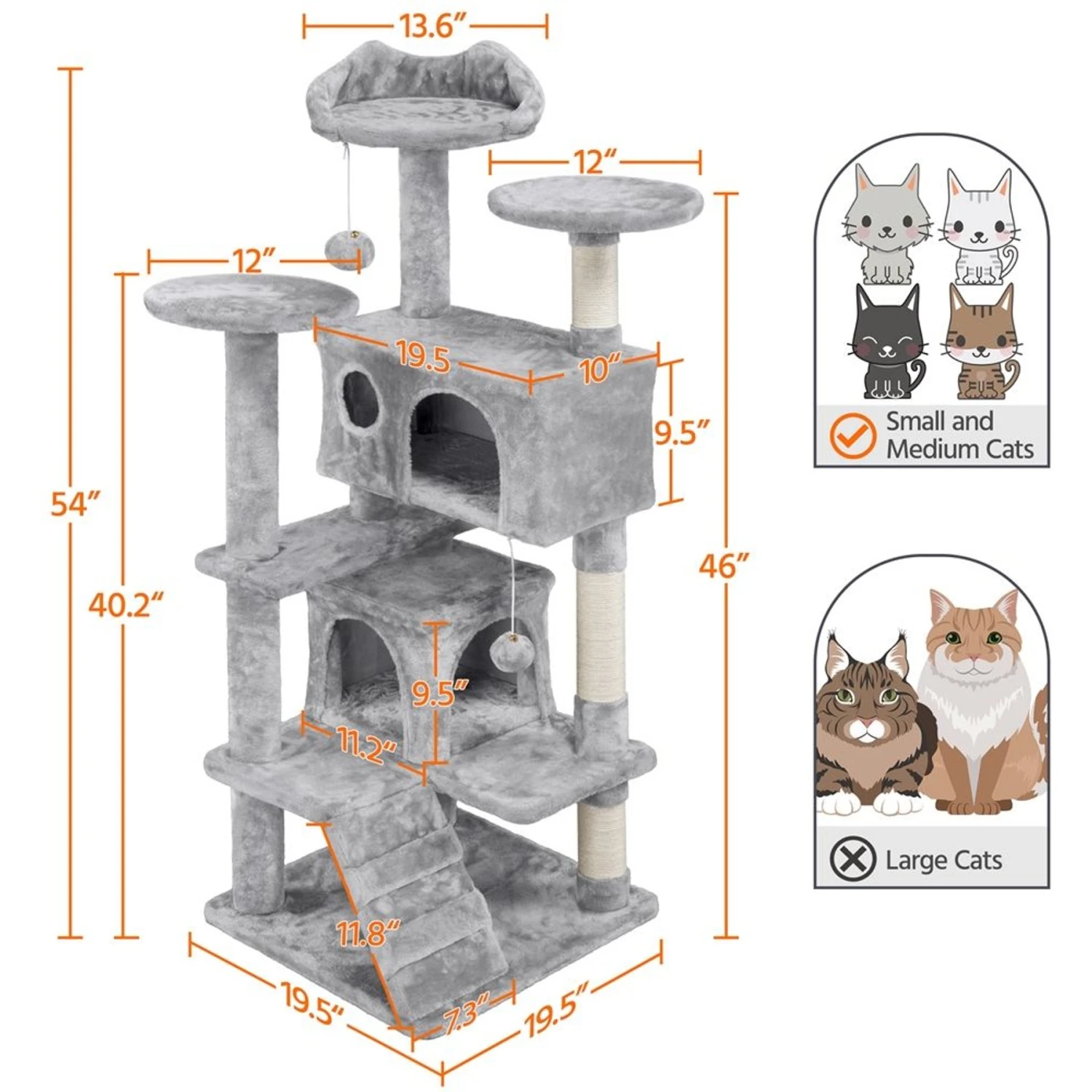 - Please make sure the size of the product fits your pet before purchasing. This cat tree only suits small/medium cats.